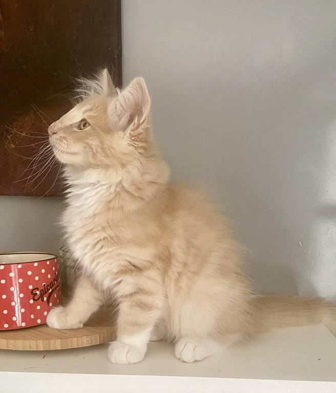 Aristote du Comte de Grimm : Mâle crème tabby makerel et blanc - A rejoint sa